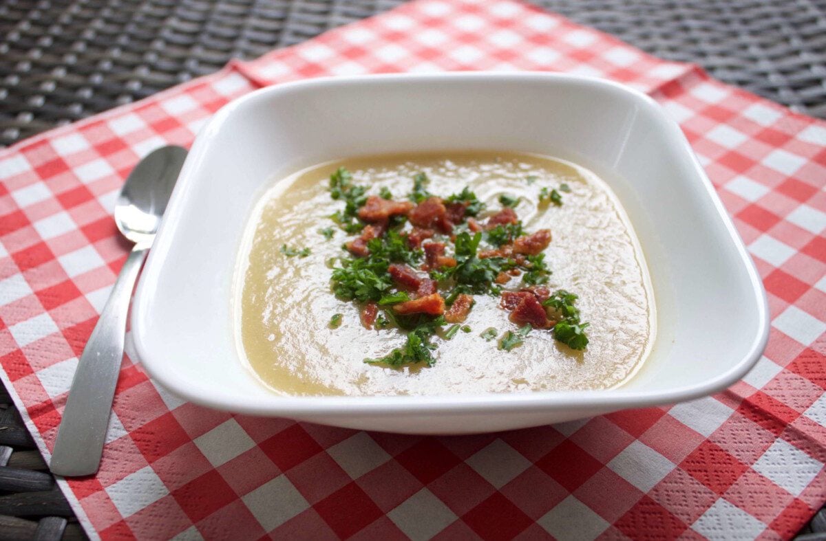 Simply delicious! Slow Cooker Celery Soup with Bacon is the perfect recipe for busy summer evenings.