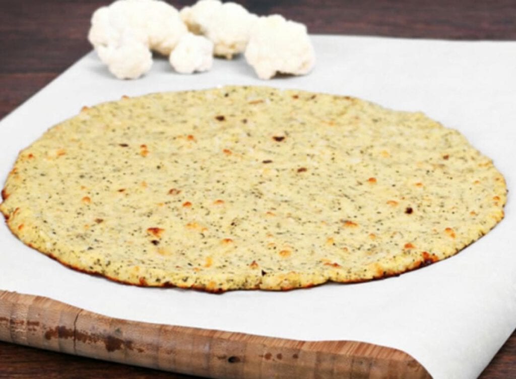 - Remove from oven. Top your cauliflower crust with traditional pizza toppings. Reduce heat to 400 & bake pizza to desired doneness, usually 10-20 minutes more.