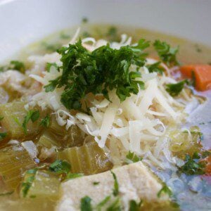 - Put soup in bowls, and garnish with parmesan cheese and parsley.
