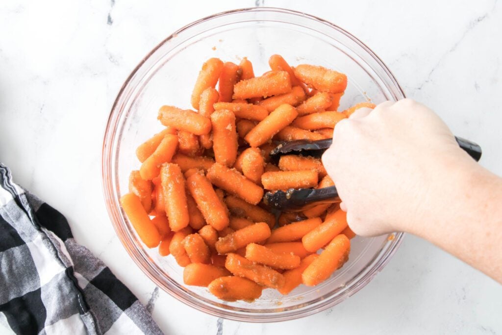 - Add the brown sugar mixture to a large bowl with the carrots and coat every carrot.