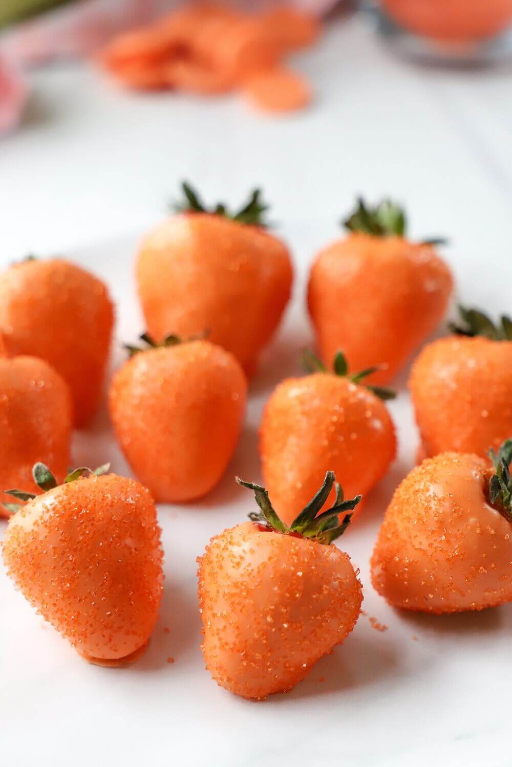 We love using melting chocolate to make creative desserts and snacks. Chocolate-covered fruit is a well-loved treat, but these Chocolate-Dipped Strawberry Carrots turn it into something more! Whether you’re entertaining friends or family this holiday, your guests are sure to be dazzled by these sprinkled snacks.