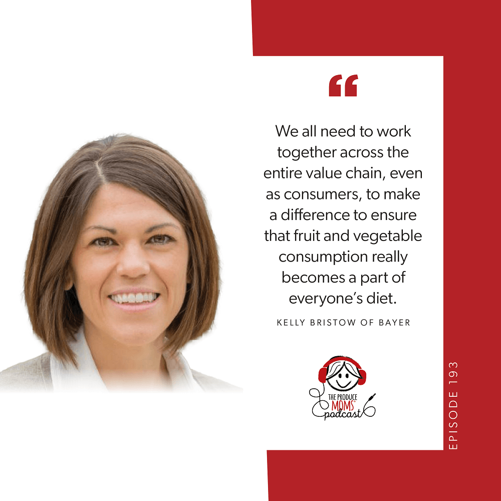 Kelly Bristow is the Science and Nutrition Partnerships Manager at Bayer and mom to two young kids. She meets with outside organizations and stakeholders to bring together influential people to think globally about how we can impact fruit and vegetable consumption. Jenny Maloney is the Strategic Account Manager for the Americas for Bayer Vegetable Seeds all while being mom to three young girls. Jenny and Kelly, along with Lori, put together a virtual event called Beyond Farm to Table: A Seedโs Journey to Your Plate. Bayer wanted to have a holistic look at the food chain, not only looking at it from a grower or retailer perspective, but also a consumer perspective. Bayer pulled together three leading experts in this space. Lori was there moderating the event. They also had David Bell, CMO at Long Vine Growing Company, Chad Street from the Albertsonโs Company, and Jana Parker from IRI Fresh. All of these different perspectives made for such a great, well-rounded, interactive event.