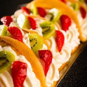 What makes a taco dinner even better? MORE TACOS! Cinco de Mayo is right around the corner and we have the ultimate dessert taco recipe to share with you…Fruit Tacos! They are perfect to enjoy after your favorite savory taco, because really….there is NO SUCH THING AS TOO MANY TACOS!
