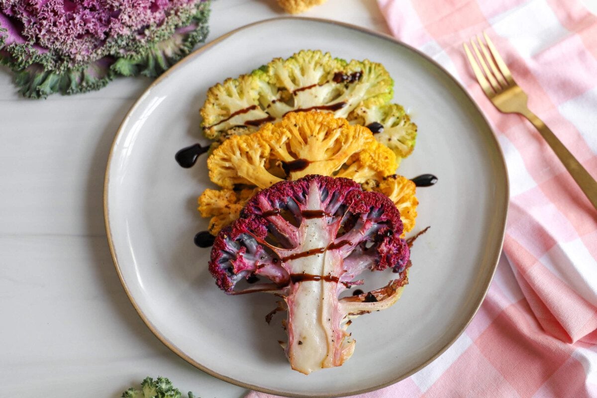 Are you planning to share a romantic meal at home with your Valentine this year? Spend a night in with your sweetheart and show them how much you love them with a vibrant dinner — Roasted Multi-Color Cauliflower Steaks with a Balsamic Reduction. No reservations required!