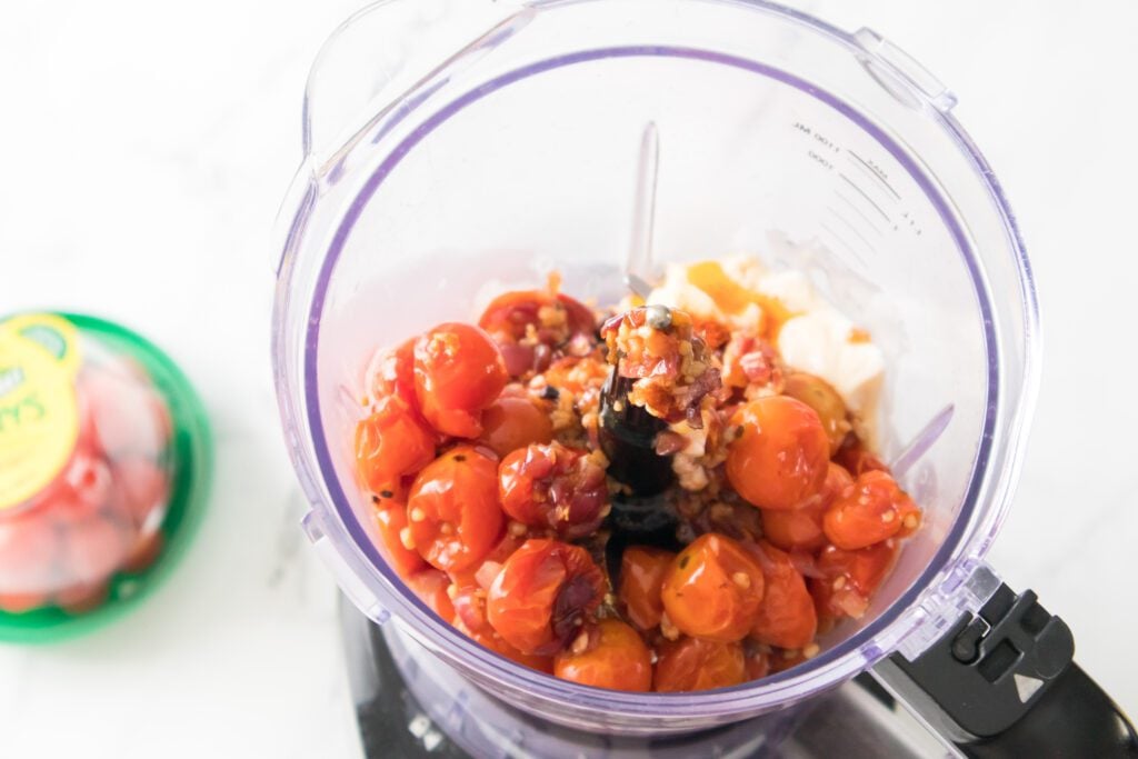 Step 4 – Blend. In a food processor, blend the roasted tomatoes/garlic/onion, all seasonings (paprika, cumin, chipotle chili powder), mayonnaise, hot sauce and white wine vinegar. Process the mixture until smooth. You may have to scrape down the sides in between pulses. Finally, season with additional salt and black pepper if necessary.