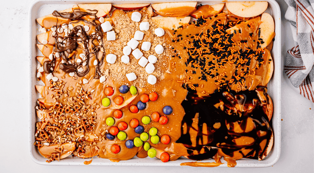 What Toppings Can I Use for a Caramel Apple Sheet Pan Recipe?