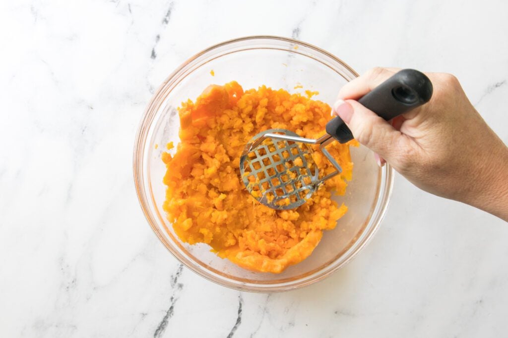 - Boiling – place sweet potatoes in a pot of boiling water. Simmer for 15-20 minutes or until fork tender and then drain. Allow to cool before handling and scoop out the sweet potato into a bowl.