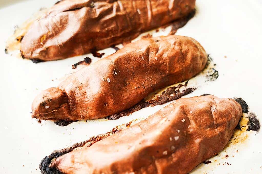 Finally, bake for 45–55 minutes. You’ll know they are ready when the skins look slightly deflated and the kitchen smells like toasted marshmallow.